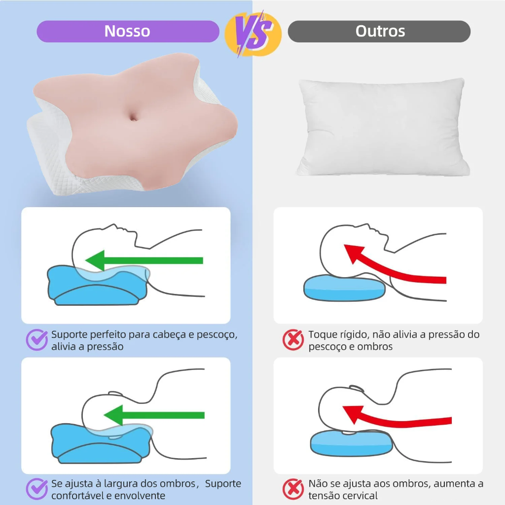 Dormir em um travesseiro comum é como tentar equilibrar sua coluna em uma nuvem sem suporte. Sua cabeça afunda, seu pescoço fica desalinhado e suas vértebras cervicais sofrem uma pressão constante por 8 horas seguidas. O resultado? Torcicolos, dores de cabeça crônicas e um dia que começa com mau humor e cansaço.
